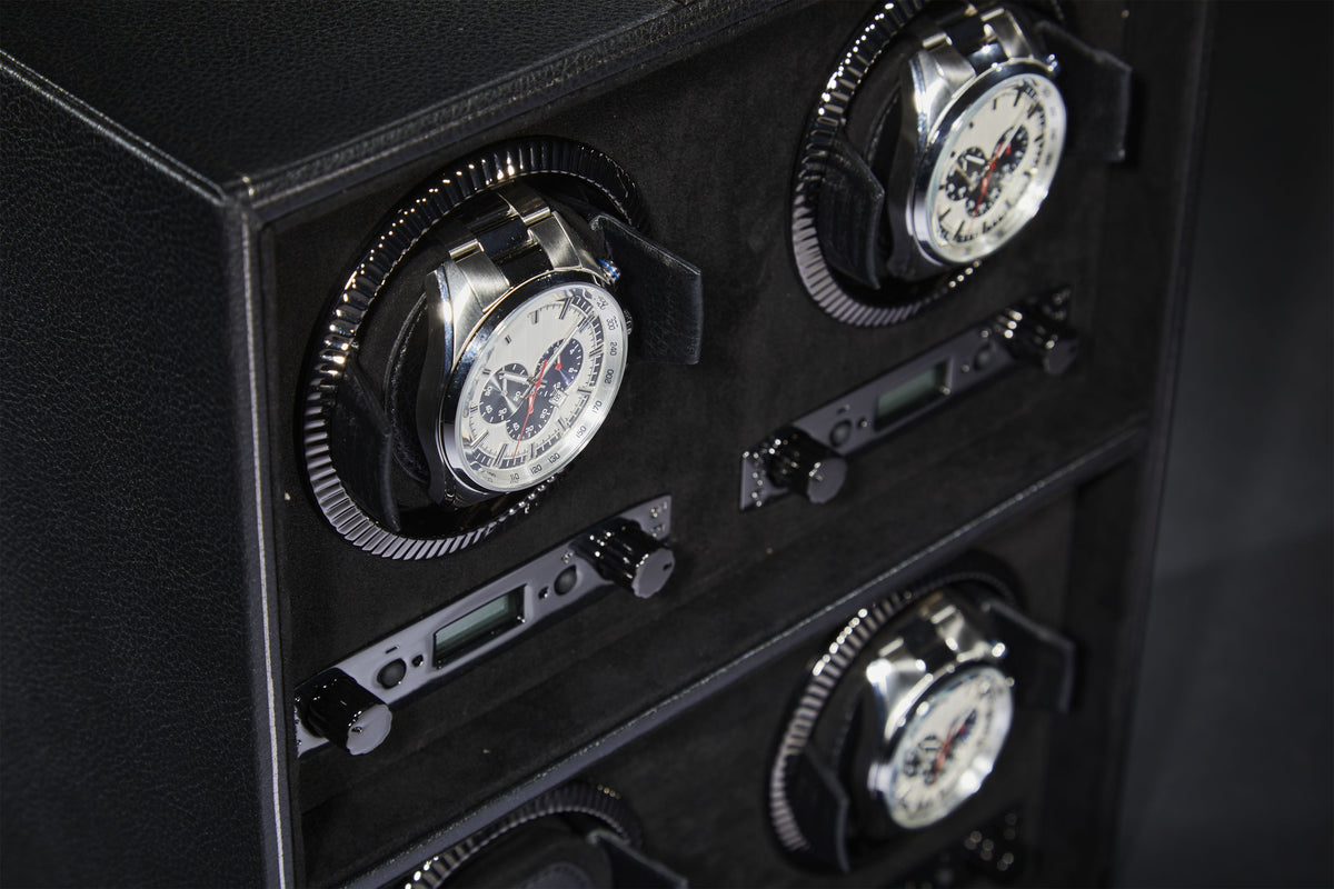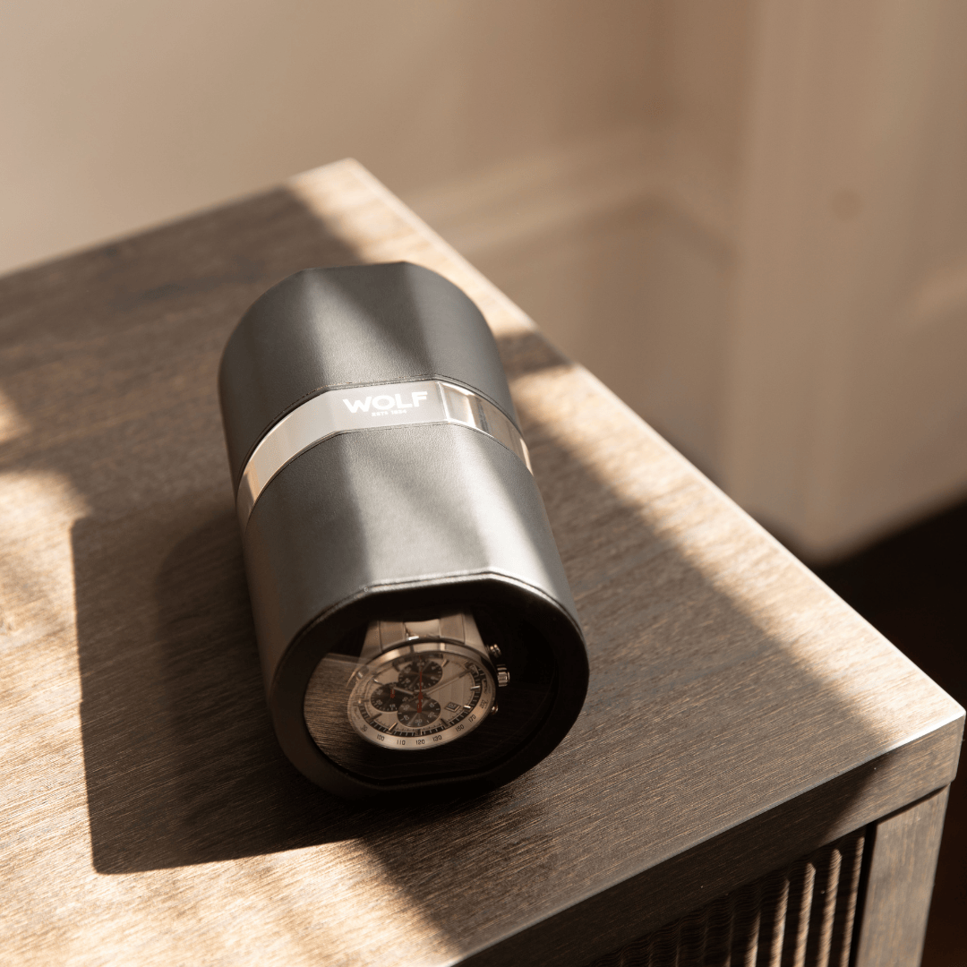 When choosing a WOLF winder, start with capacity, pick a single, double, or multi-watch model based on how many automatics you rotate. For settings, most Swiss movements run happily at around 650–900 TPD and bi-directional, and every WOLF unit is fully programmable so you can fine-tune as needed. Consider power too: mains is standard, while many models also run on batteries for cabinets and safes. Finish it off with materials and style, from vegan leather to metal accents in colourways that suit your collection or décor and enjoy peace of mind with a 2-year WOLF manufacturer warranty.