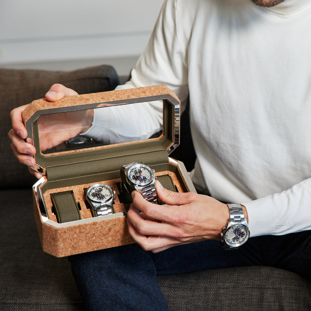 Sustainable Portuguese cork with a premium finish. Lightweight, durable and distinctive - ideal for travel rolls and elegant watch boxes. Shop Cortiça.